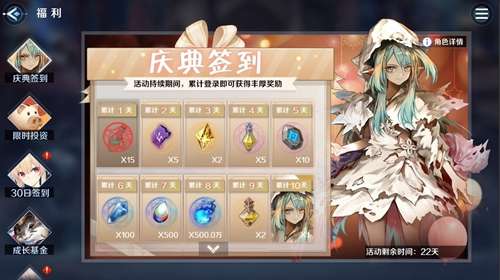 6月30日——7月21日,庆典签到活动开启,累计登录10天,即可解锁全新UR人偶「伊敏瑟伦司祭 弗莱尔」,签到还有灵魂晶石、灵魂、事象晶核等丰厚奖励!