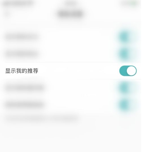 4、隐私设置界面点击“显示我的推荐”后面的圆点。