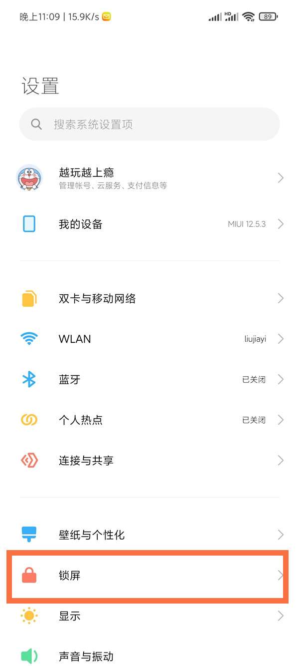 1、从设置菜单中选择锁屏。