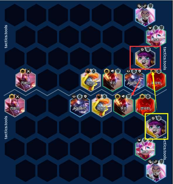 第二排的最右边会多一个格子,这个格子能够让璐璐第一个技能会直接击中前排的坦克,作为跳板击杀后排。
