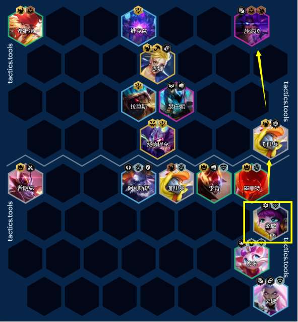 当前版本核心阵容就是3平民英雄+怪兽打控制+莎弥拉打输出。3平民英雄每2秒能够回10点法力值,而怪兽拉莫斯、维克兹、费德提克、厄加特以及瑟庄妮都能够带有控制。因此高控制+高伤害就是阵容的关键。阵容运营思路就是3源计划2平民2枪手,最好的情况下是在3-2阶段,开出3魔盗2枪手羁绊。这样能够在3-2阶段开出莎弥拉的英雄强化。