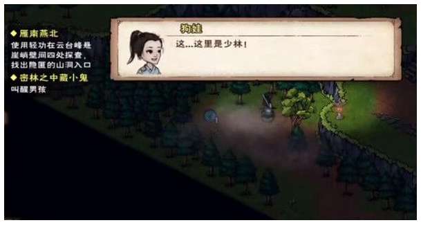 4、狗娃被和尚带回少林。去少林(9,34)触发任务,狗娃想逃跑去找薛龙城,把他送回少林,主角自己去恒山找薛龙城。