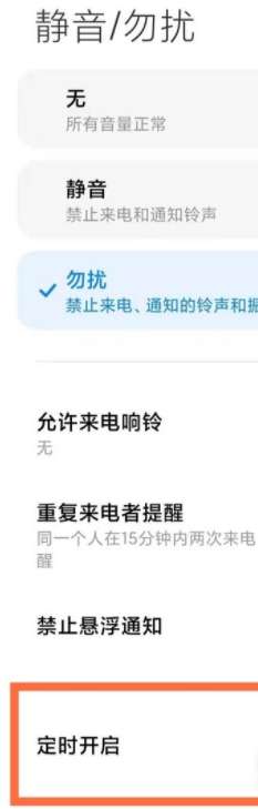 3、将勿扰选项勾选就可以了,还可以自定义定时开启的时间。