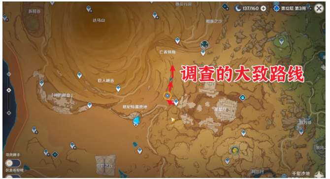 2、根据任务指引,调查商队最后出现的地点。调查路线如下。