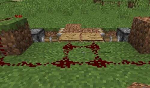 通过摆放红石粉连接成红石线,用以传到红石信号,来操纵机械元件和红石器原件。