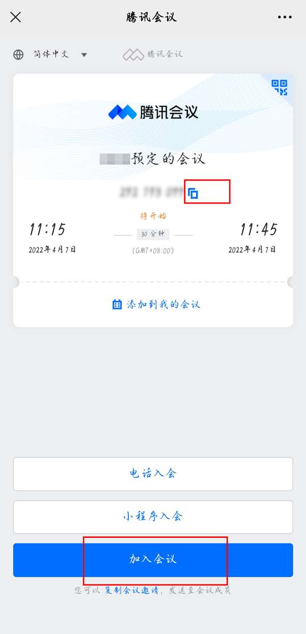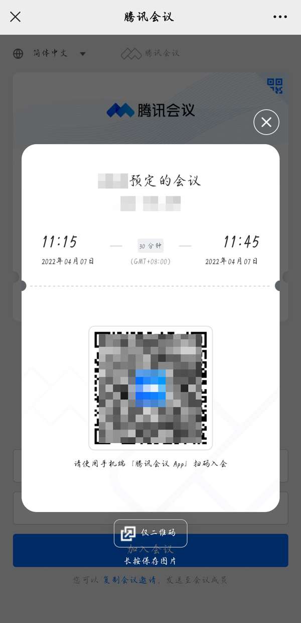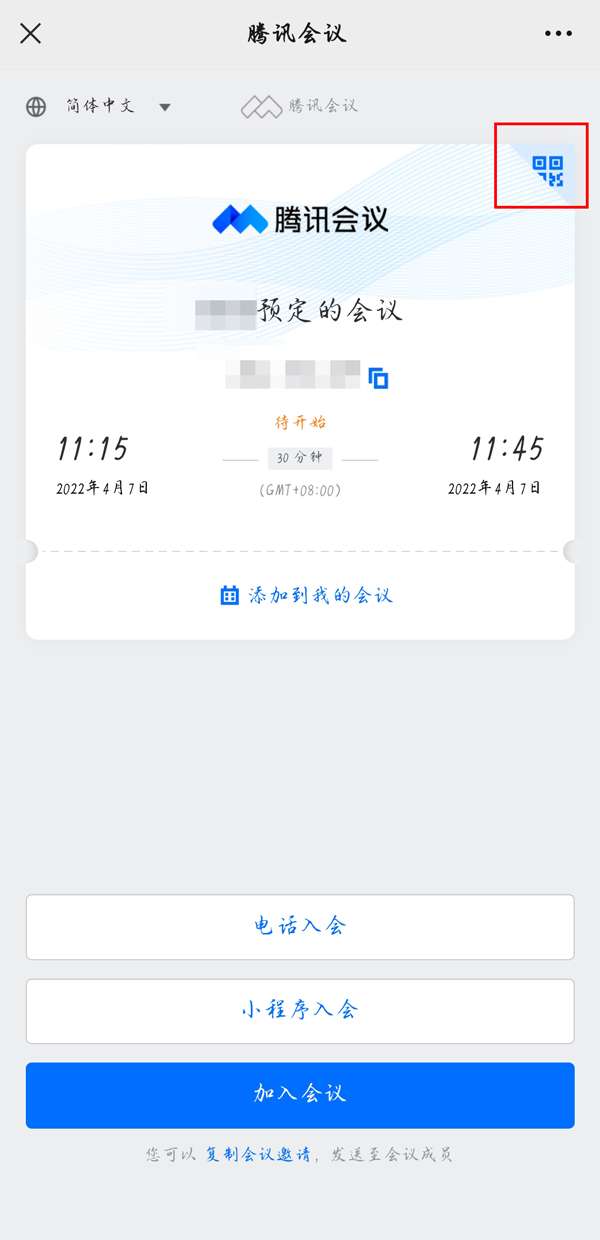 通过扫描预定会议二维码加入会议方法: