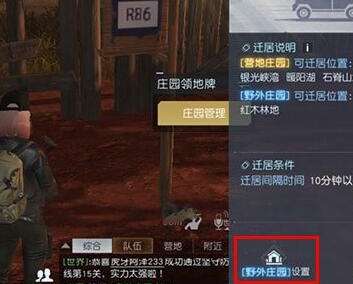 首先玩家先来到自己的家园,在大门外面找到庄园牌子,靠近进行点击“庄园管理”,接着点击右边的“迁居”。