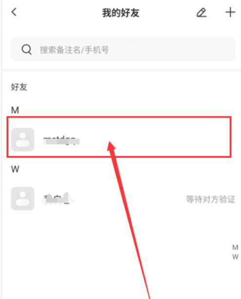 第二步:在我的好友列表页面,点击要删除的好友,如下图所示。