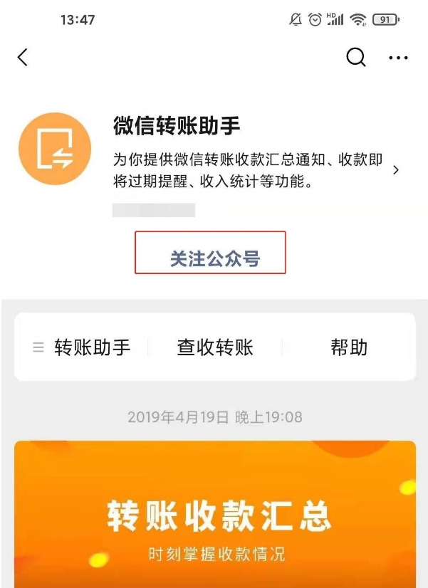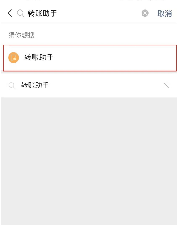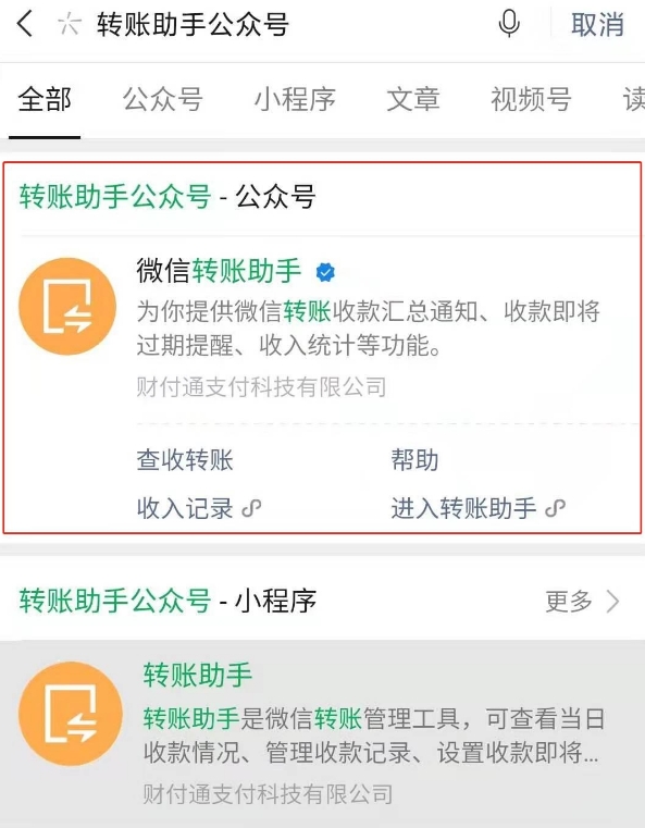 5、输入转账助手公众号。