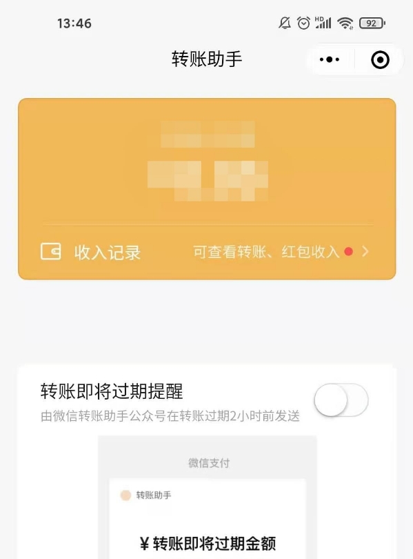 3、点击转账助手可以开启【转账即将过期提醒】和【转账收款汇总通知】。