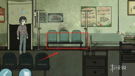 4、点击墙上挂着的抹布,得到抹布,走进医院后面的房间。 5、在椅子旁边使用抹布将椅子擦干净,把小雅放在椅子上。