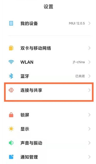 1、打开设置页面,点击连接与共享。