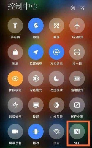 从屏幕右侧下拉,呼出通知栏,选择NFC功能图标即可。