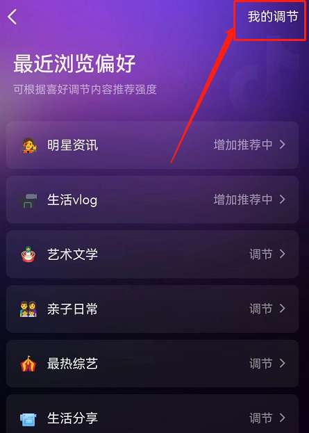4、接着点击右上角【我的调节】。