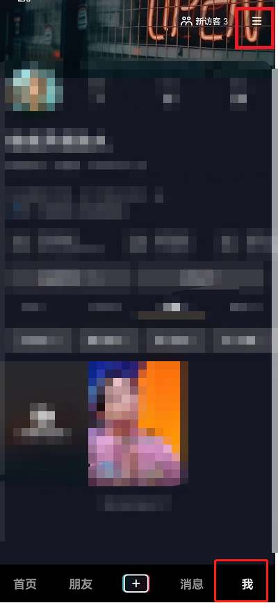 1、进入抖音我的页面点击右上角【三】。