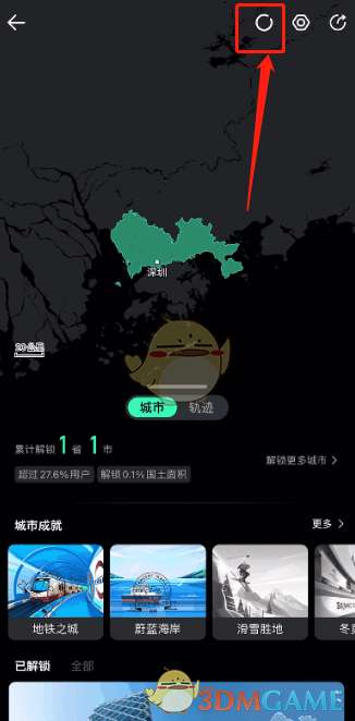 3、进入足迹地图后点击右上角的微信状态图标。
