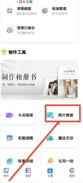 5、点击如图的照片修复功能。