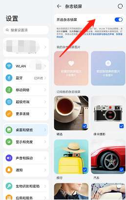 3、选择【开启杂志锁屏】即可。