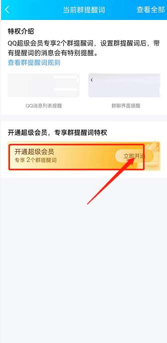 4、最后,设置提醒词需要开通超级会员,点击下方的立即开通,输入提醒词设置就可以了。