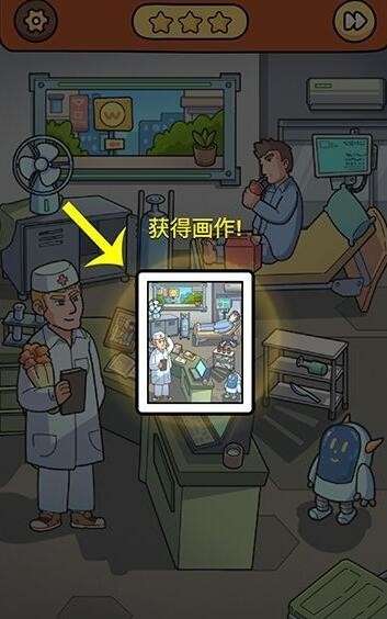 8、向左滑动氧气瓶,看到标志点击收起,获得画作,医院通关成功。