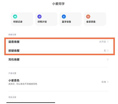 3、然后选择【语音唤醒】,录入唤醒词后,直接对着屏幕呼叫小爱同学唤醒。