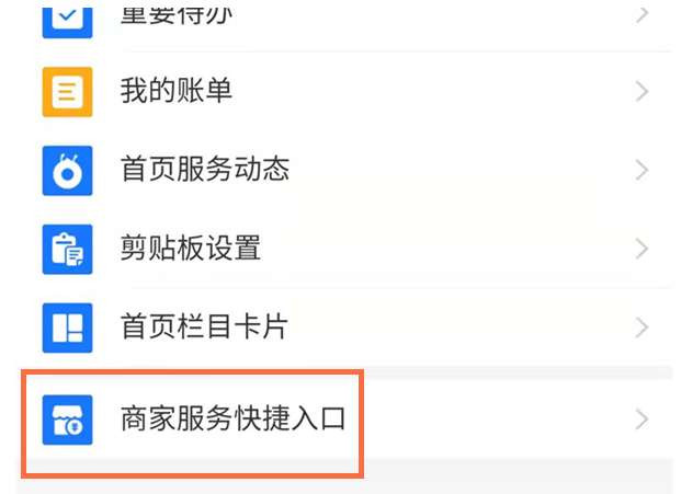 3、选择【商家服务快捷入口】。