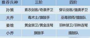 朱治和小乔主要选择鼓手兵种,放队伍后方加士气。