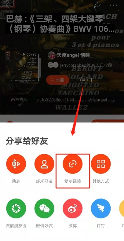 第一步:大家首先在虾米音乐app找到自己需要导出的歌单,点击上方分享链接