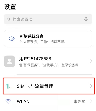 3、在SIM卡与流量管理页面,选择一张需要取消HD通话的手机卡。
