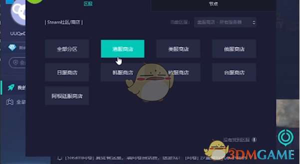 1、首先打开网易UU选择加速steam商店,在加速的界面中点击上方的切换即可变更地区所在节点,本教程以港服为例。