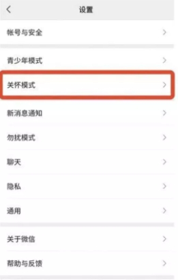 2、进入设置后在青少年模式下面可以看到关怀模式,点击进入。