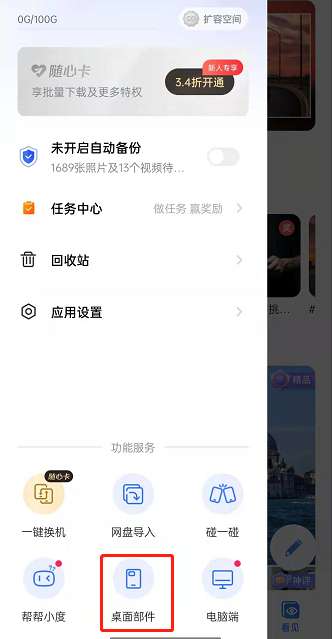 2、进入软件设置后,点击下面的【桌面部件】。