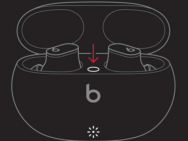 2、按住充电盒上的系统按钮 15 秒钟,或者直到 LED 指示灯呈红色和白色闪烁为止,然后松开按钮,等待白色即可重置。