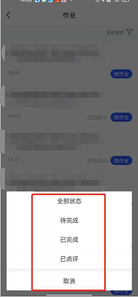 4、最后,选择上方的状态,你还可以对自己的作业进行筛选。