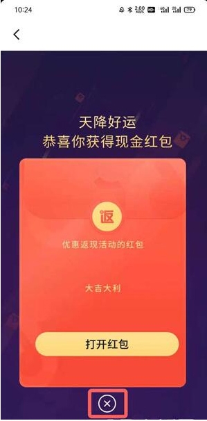 3、首先跳出来的是一个虚假红包,用来测试用户的防诈骗能力,大家要点击关闭。