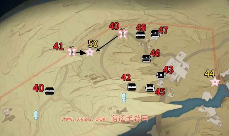 4、荒石高地宝箱40-50位置如图,其中两个声匣: