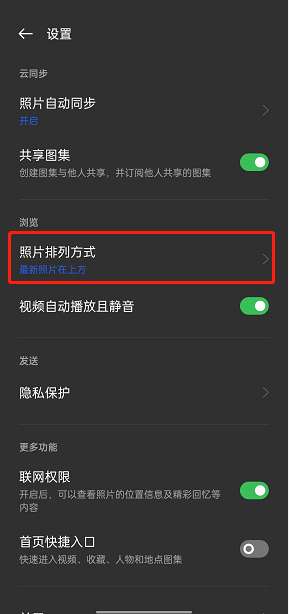 3、选择【照片排列方式】。
