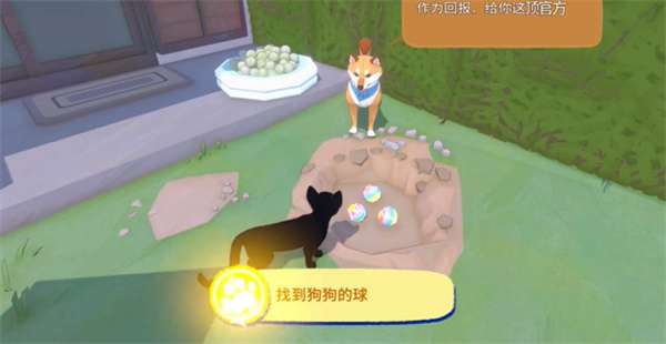 6、将三个球全部拿回去带给狗狗,就可以完成这个任务了,解锁成就并且可以获得一个头饰奖励。