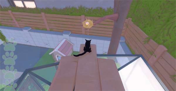 2、需要帮狗狗找回丢失的球,来到下图所示的位置,顺着架子可以爬上屋顶。