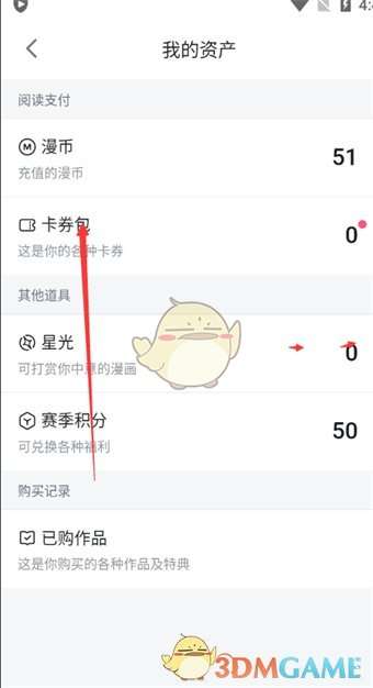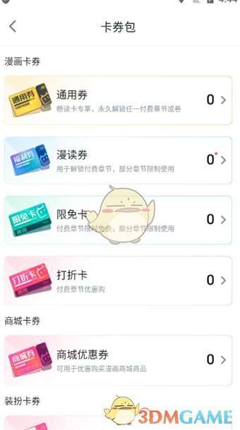 4、在卡券包里,可以看到自己的【漫画卡券、商城卡券、装扮卡券】了。