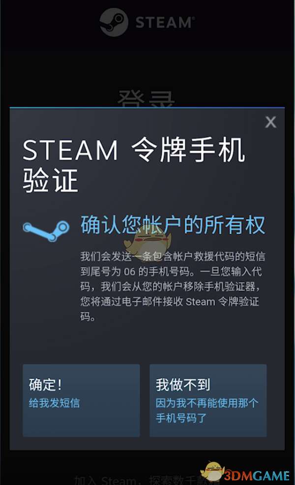 2、这时steam会要求进行验证账号,任意选择邮箱、手机等验证方法即可将steam与手机app相互关联。