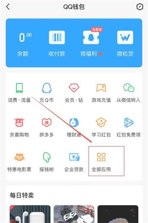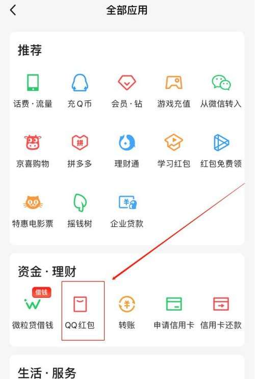 2、选择全部应用,找到QQ红包。