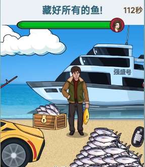 6、把最后剩下的一些鱼移动到强哥身上,就能顺利通关了。