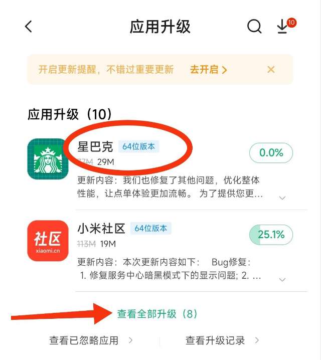 以上这些就是小编给大家带来的小米12及Pro一键升级64位应用流程教学,大家看完这篇教程后应该能知道怎么操作了,希望对大家有所帮助,更多相关资讯内容敬请关注十大评测网。
