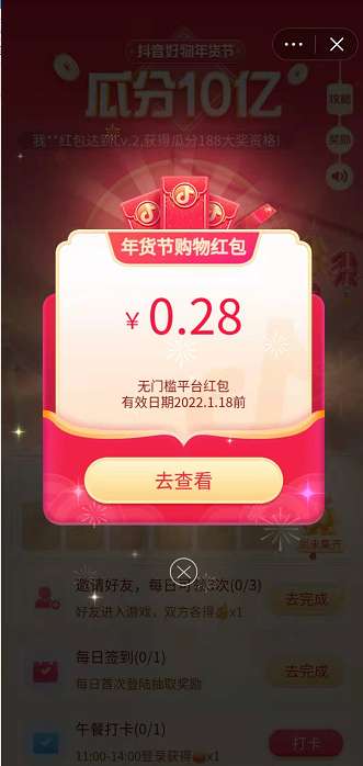 5、然后即可获得红包。