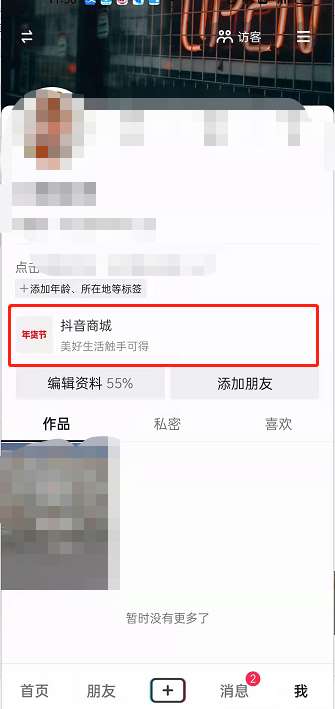 1、打开抖音APP,在个人中心中点击【抖音商城】。