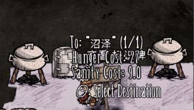 8、各个“标识牌”之后都可以来回传送,不过传送过程中要消耗很多“饱食度”和“精神值”。