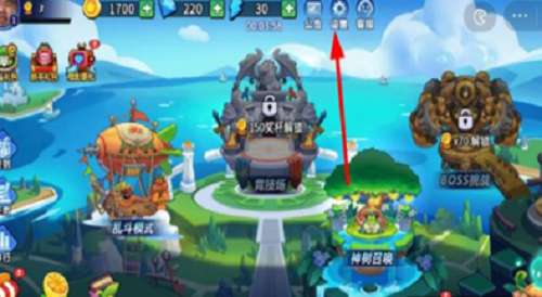 1、首先我们进入到游戏当中,点击上方标记好的【设置】按钮。