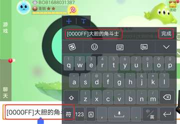 比如说,想要起一个颜色为深蓝色的【大胆的角斗士】的昵称,那么此时我们只需要在输入框内输入【[0000FF] 大胆的角斗士】就可以了。