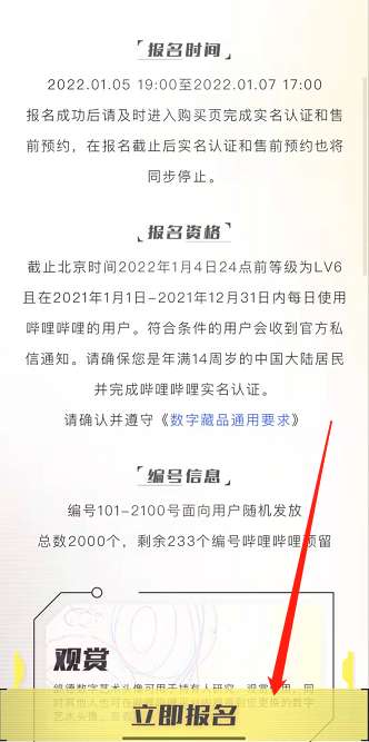 4、报名时间为2022年一月五号下午七点到一月七号下午五点,满足资格的用户点击立即报名即可。